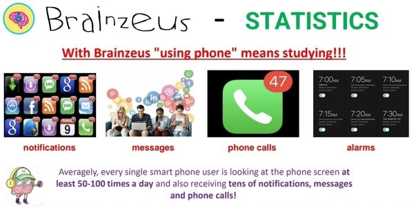 With Brainzeus you will be able to study every time when you will look at your phone screen, when you will receive message, phone call and notification, every time when you will be unlocking your phone or even every time when you would like to listen a music.