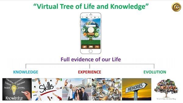The main part of the VTREEO - "Together We Can Grow" project is the "Virtual Tree of Life and Knowledge" which representing a full evidence of our Life including our Knowledge, Book and Movie of our Life and the way we evolve throughout our Life.
