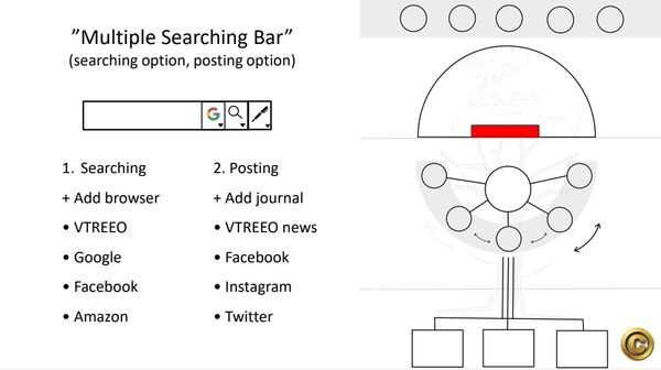 In the case of a multi beneficial partnership, "The Virtual Tree of Life and Knowledge" will be fairly and wisely split into specific sections where those contracted companies will be managing and looking after their exact section for example: Google will be managing "VTREEO Planet Globe" and "VTREEO Multiple Searching and Posting Bar", Facebook or other social media platform will be managing "VTREEO News", Amazon, Alibaba and others will be managing shopping, Ecosia "VTREEO Afforestation", Niantic "The Apprentice" etc.