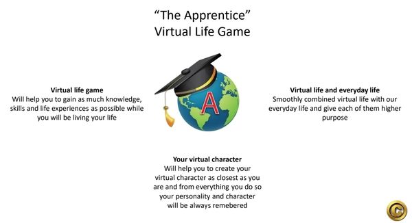 "The Apprentice" is a new virtual life game mainly focused to gain as much knowledge, skills and benefits as possible, while we’re living our life, as well as combining virtual life with our normal everyday life and giving each of them higher purpose.